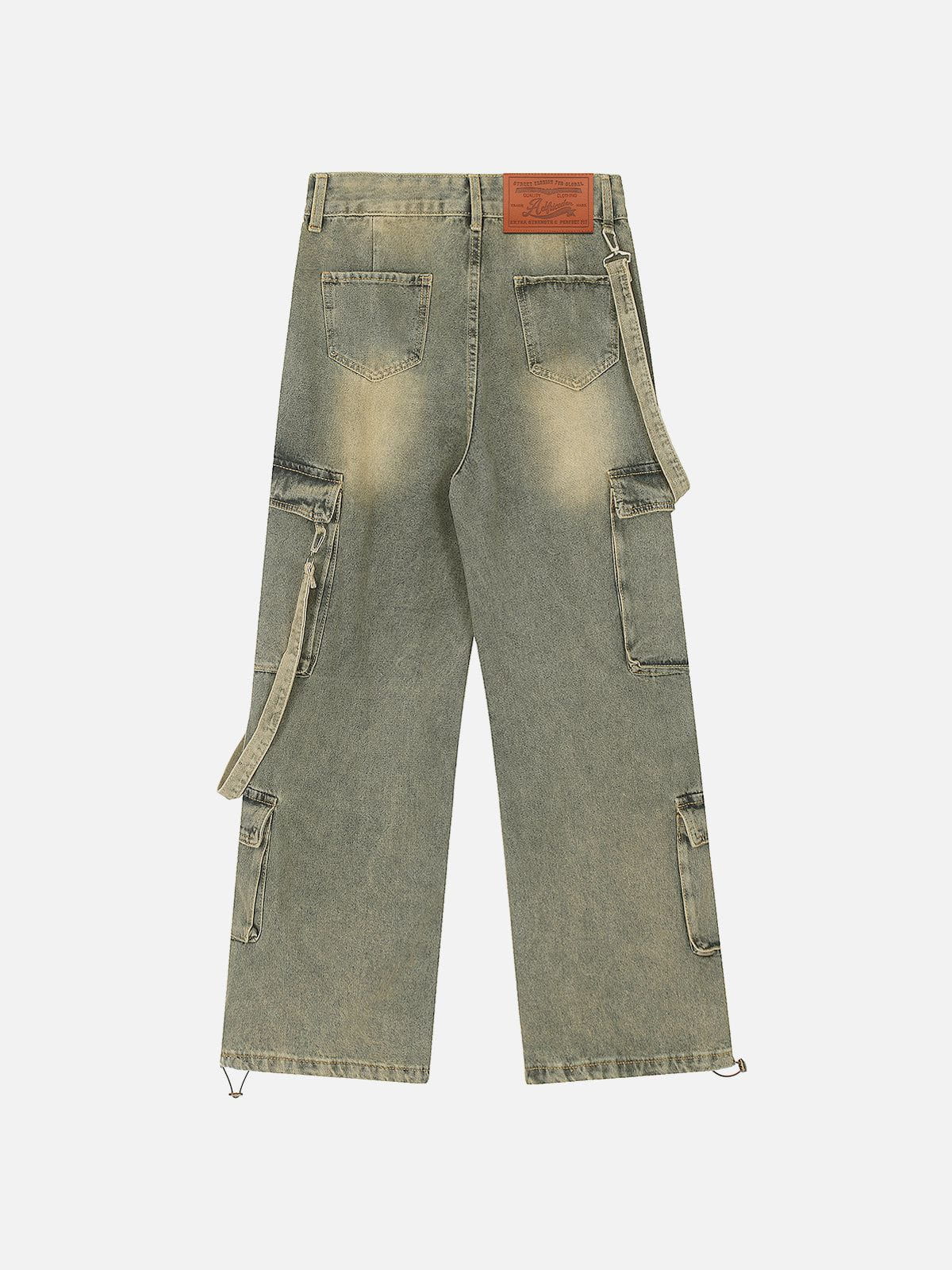 Look street-cool in these Fvshya Multi Pocket Washed Loose Jeans! These stylish jeans feature decorative belt loops and multiple pockets for an effortlessly vintage look that'll turn heads. Get the perfect mix of looking good and staying comfortable!