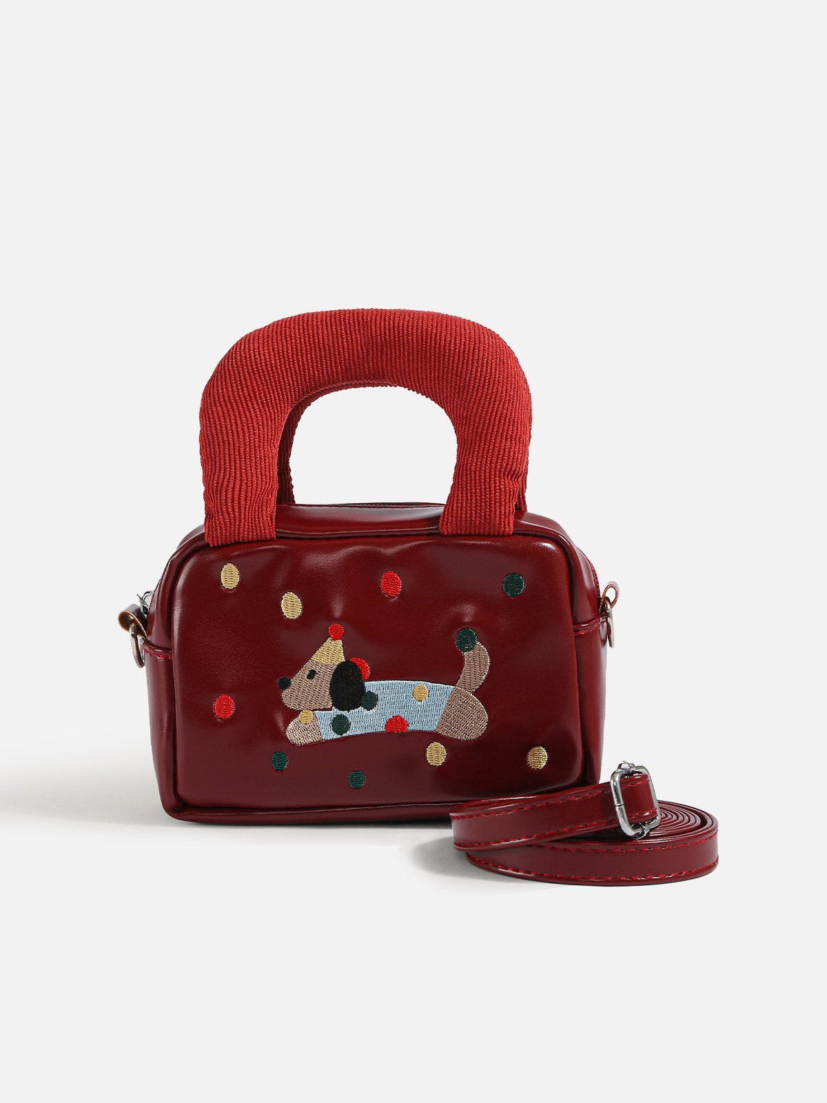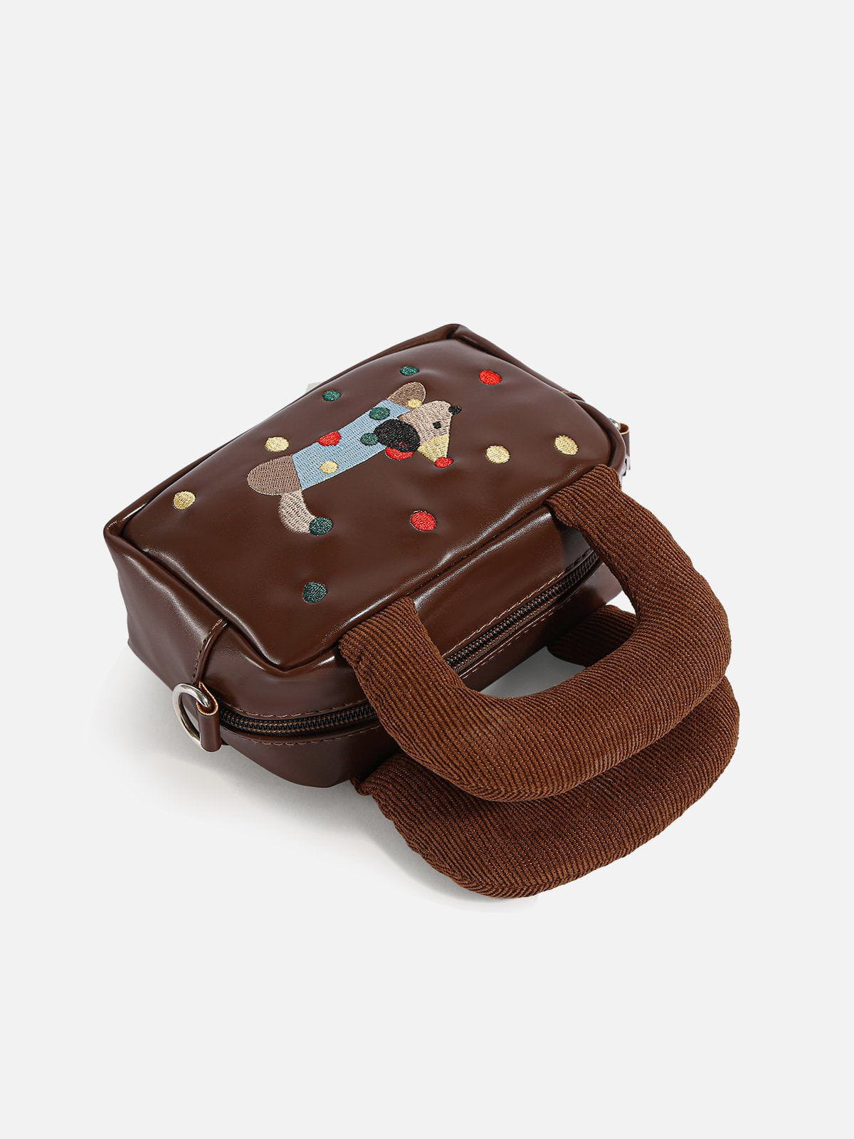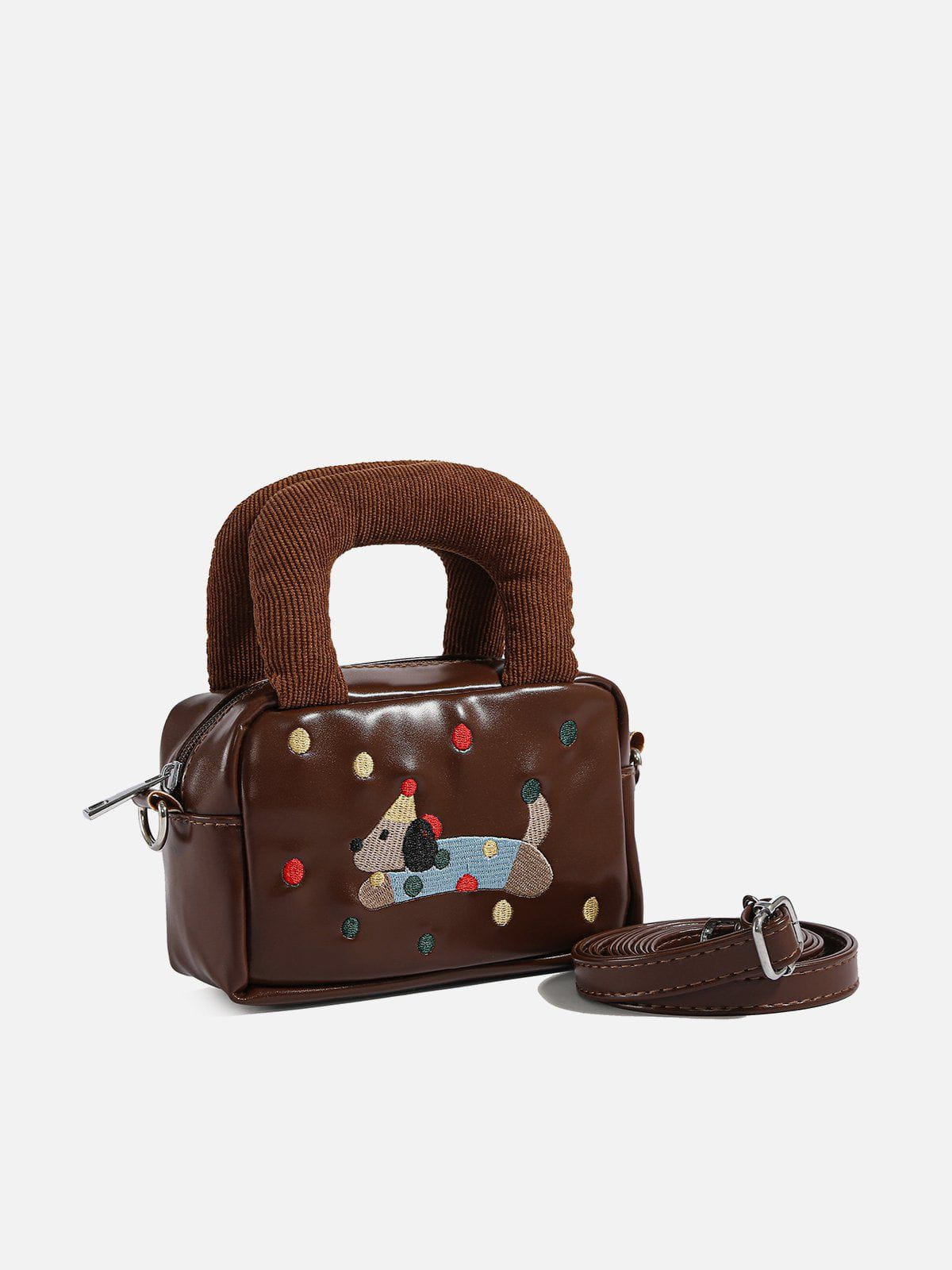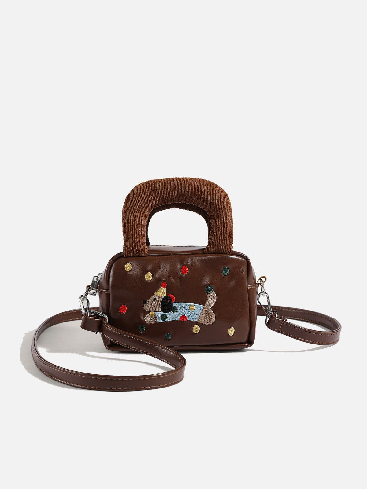 Featuring charming embroidery detailing and a playful cartoon dog design, this bag is perfect for adding a touch of fun to any outfit.