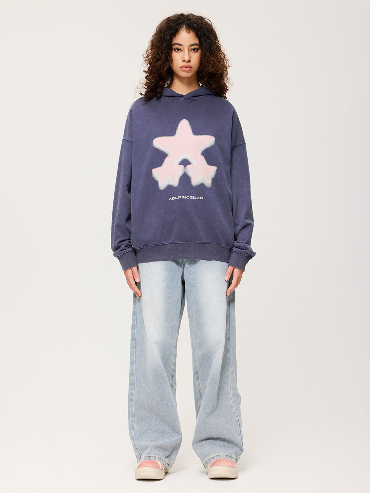 Designed with a soft, pre-washed fabric, this hoodie offers a relaxed, lived-in feel from day one. The subtle star prints blend seamlessly into the washed texture, creating a unique, worn-in aesthetic.
