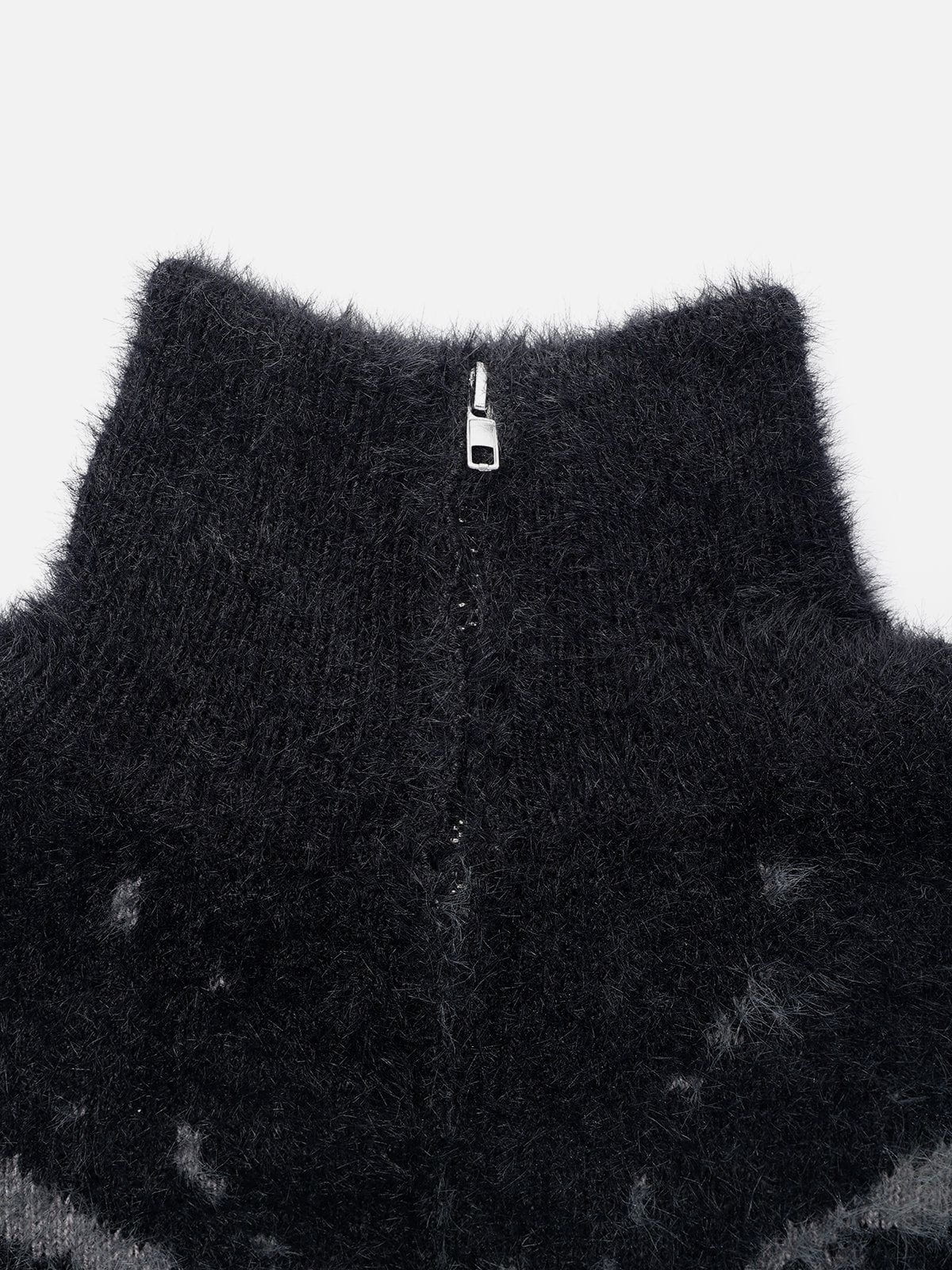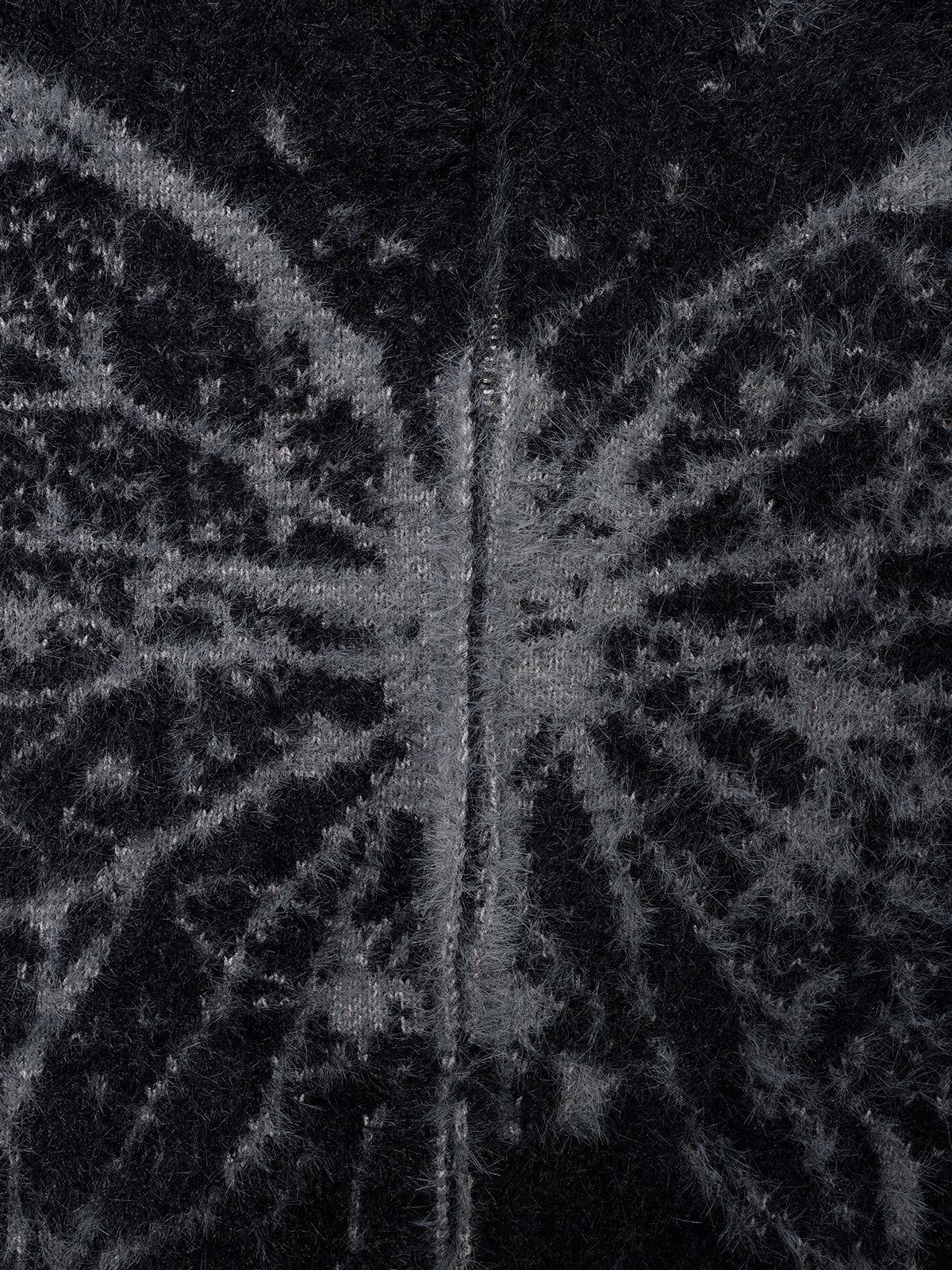 The striking butterfly print on this cardigan makes you feel like a butterfly 🦋, spreading your wings as you put it on. The high collar accentuates your impressive head-to-shoulder ratio. What are you waiting for? Unfurl your wings and soar freely!