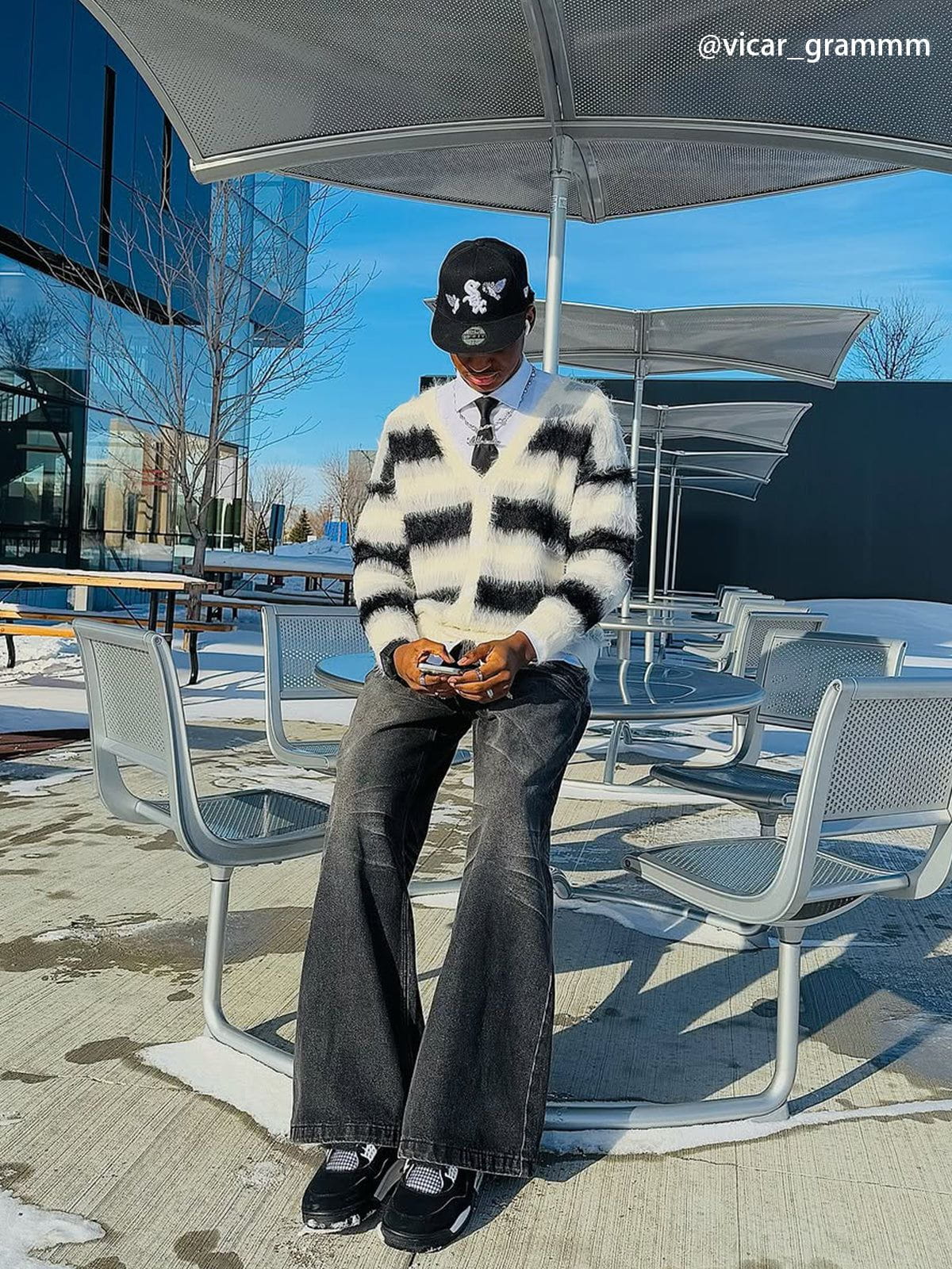 Fvshya Color Blocking Striped Fuzzy Cardigan