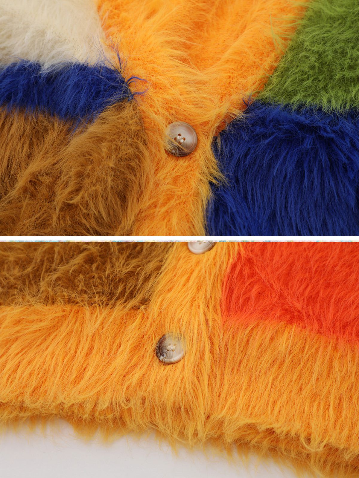 Carry a bowl of sunshine on your back with this ultra-cozy Fvshya Contrast Color Block Cardigan! This candy-inspired cardigan is as colorful as a bear's picnic basket and as warm and sweet as a bowl of honey. Wrap yourself up in deliciousness!