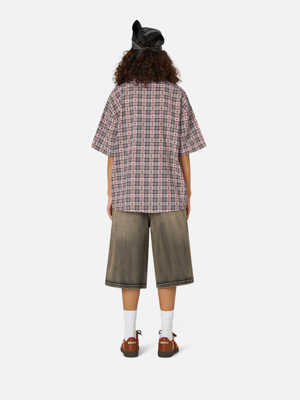 Fvshya Crochet Heart Pocket Plaid Shirt