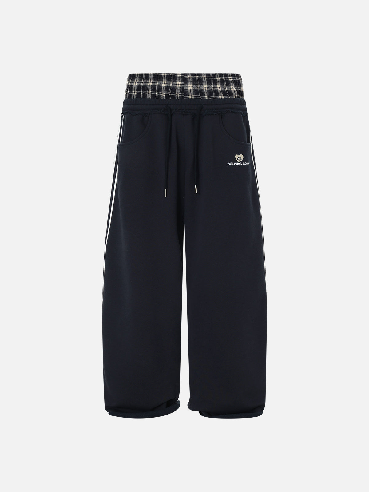 Your pants are about to fall down? Hey, buddy, this is the new fashion! With a double waistband design and plaid patchwork, these pants don’t just stay up—they elevate your style. Long enough to boost your leg proportions, they’re ready to spark a retro storm. We recommend cold water washing and hanging dry to maintain the garment’s original fit and quality.
