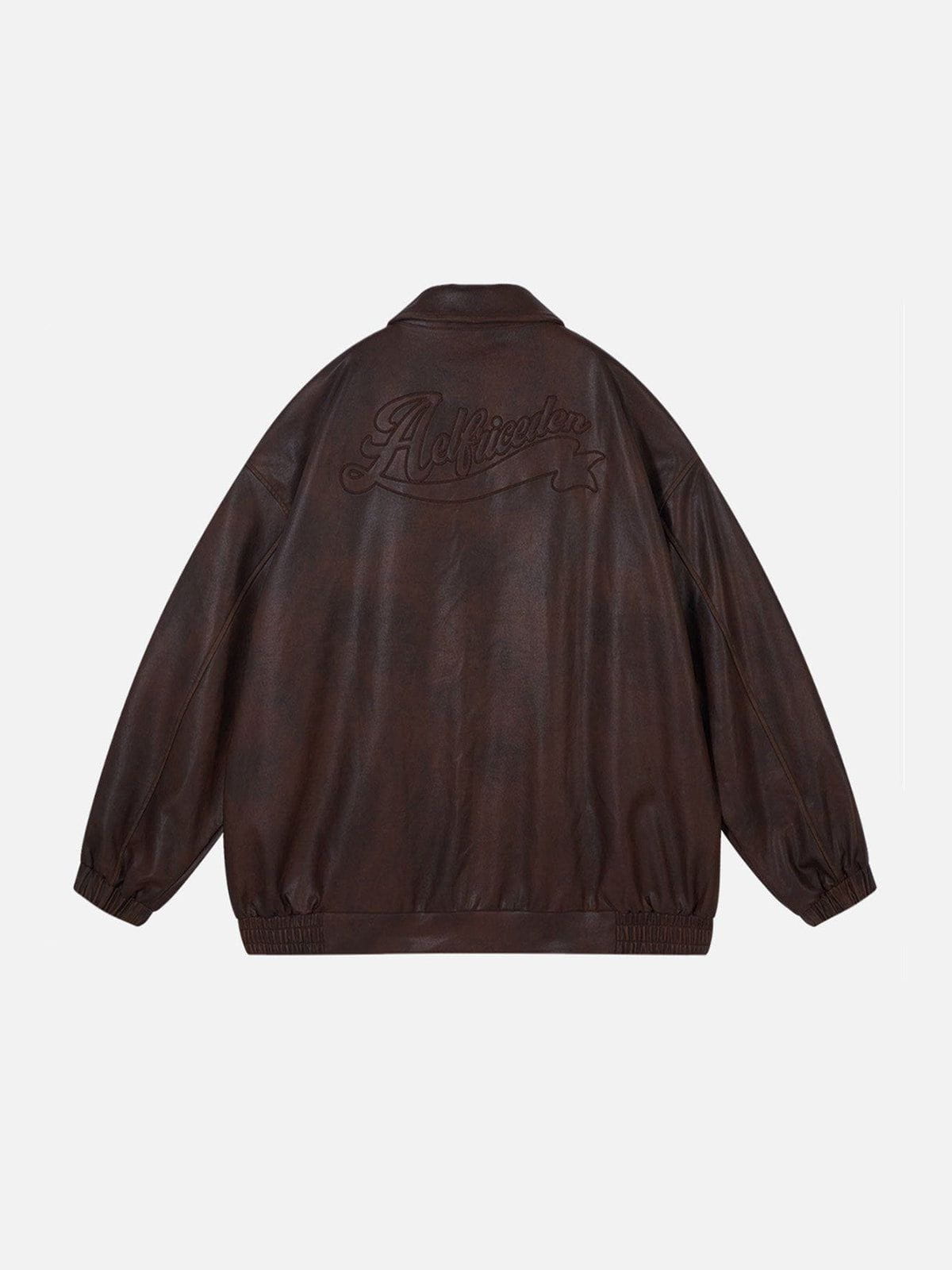 Fvshya Embroidery Fold-Over Faux Leather Jacket
