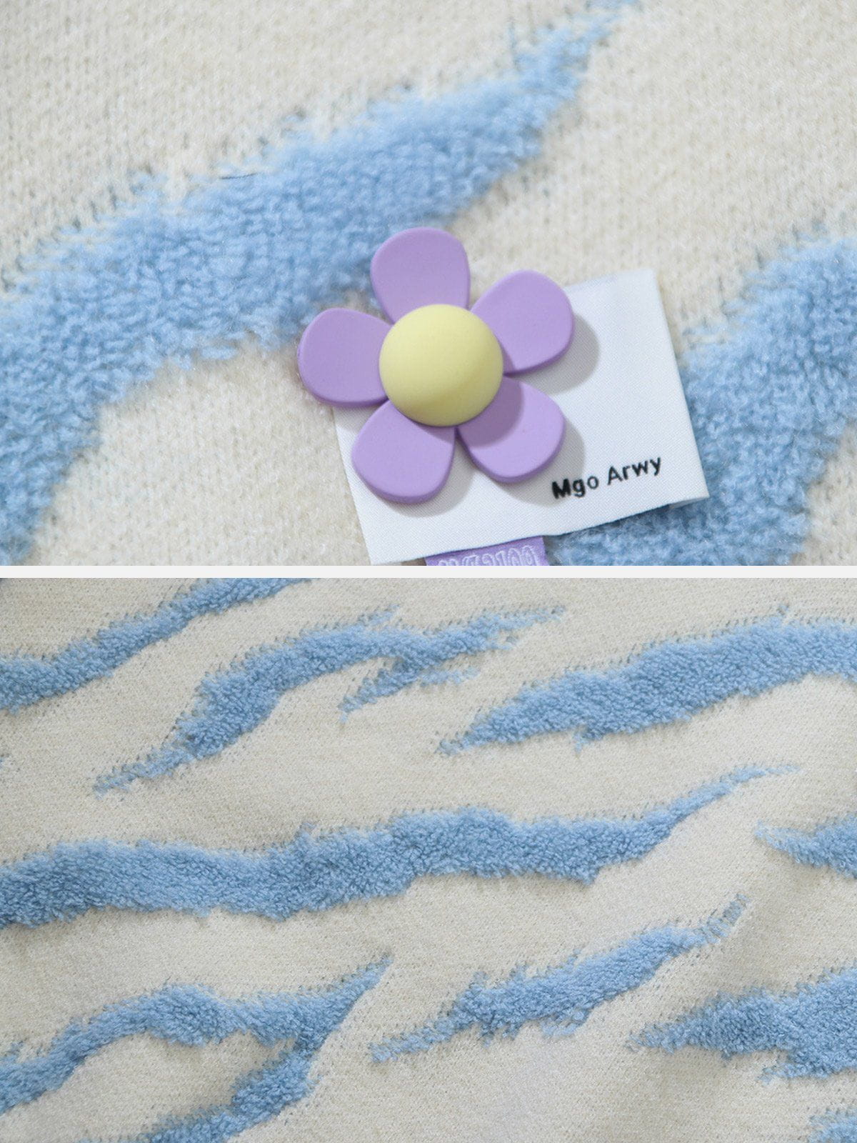 This unique vest is a fusion of classic zebra stripes and delicate floral embellishments, crafted from plush material, creating a tactile sensation that's both visually captivating and satisfying to touch.