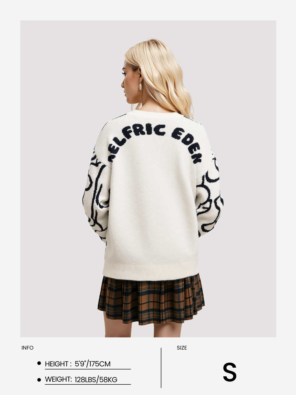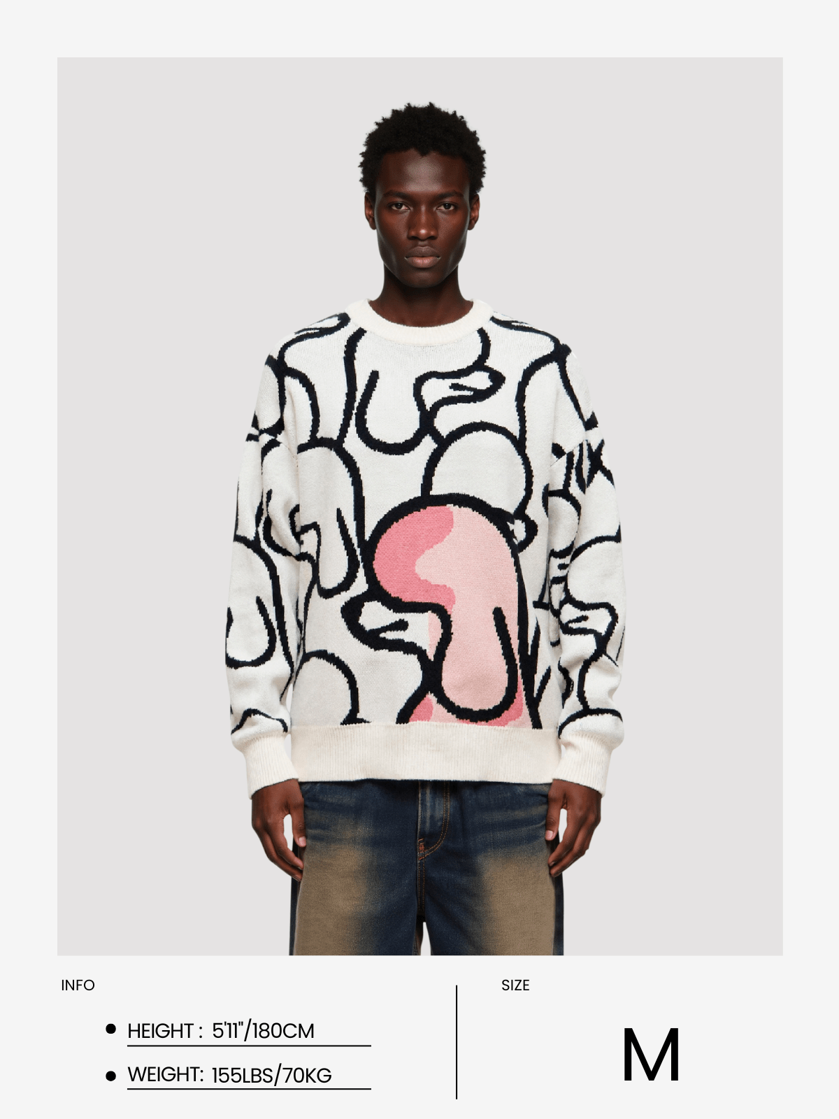 Fvshya Hand Drawn Full Print Poodle Sweater