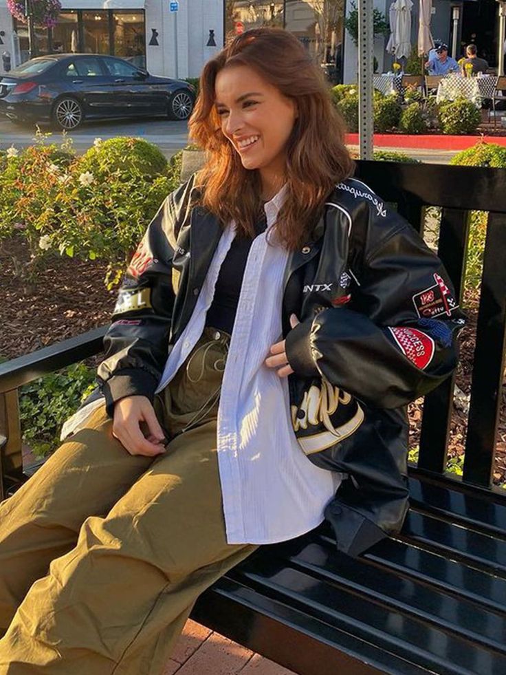 Whether it is fabric or craftsmanship, this jacket will not disappoint you. Different patterns are designed on the front, sleeves and even the neckline, making this jacket full of racing style🏍, matching with leather pants or overalls can make your outfit more distinctive.