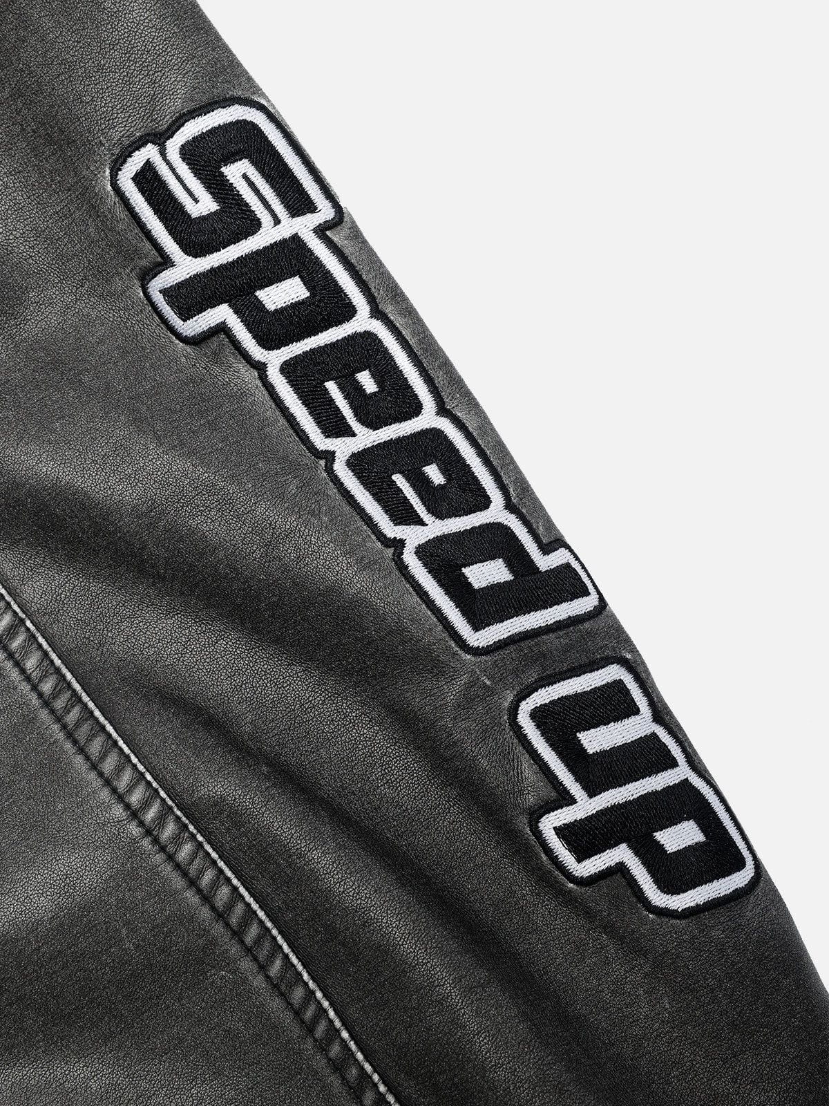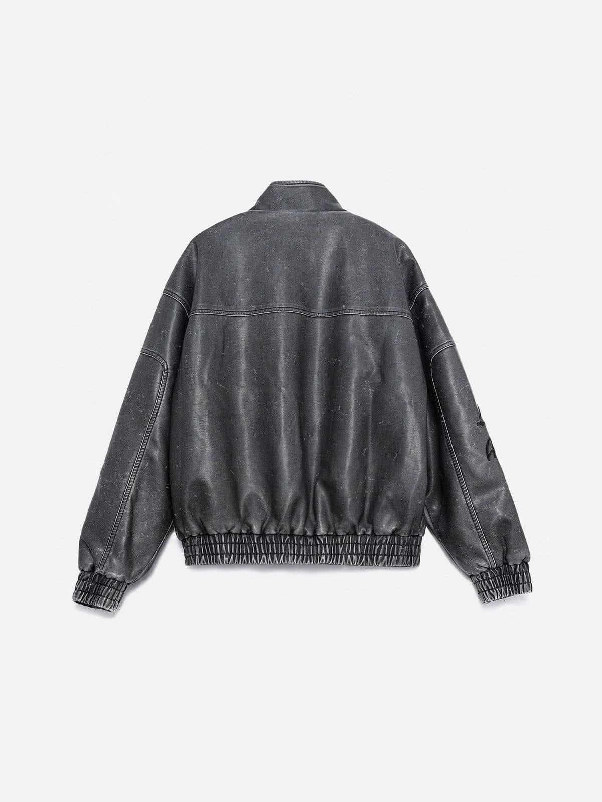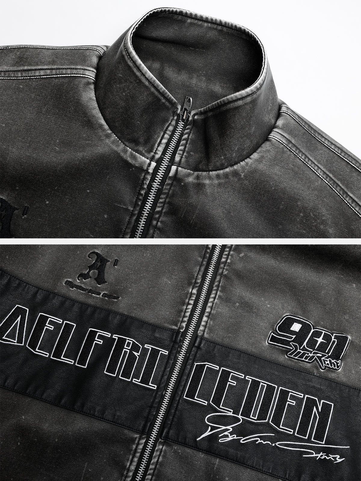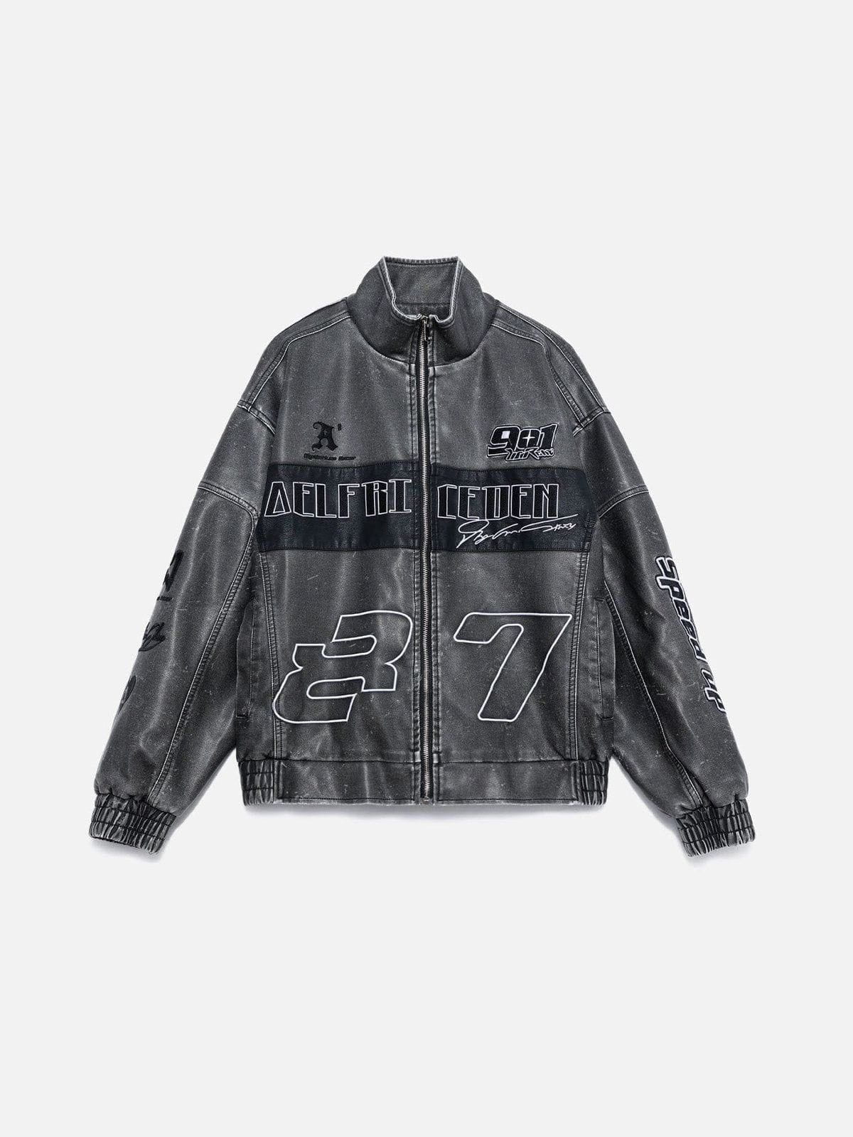 Take your racing style to the next level with the Fvshya Embroidery Washed Racing Jacket. The faux leather makes you look as fast as you are, while the embroidery gives you the edge you need to win the race! It's perfect for both the track and the street. Speed never looked so good!