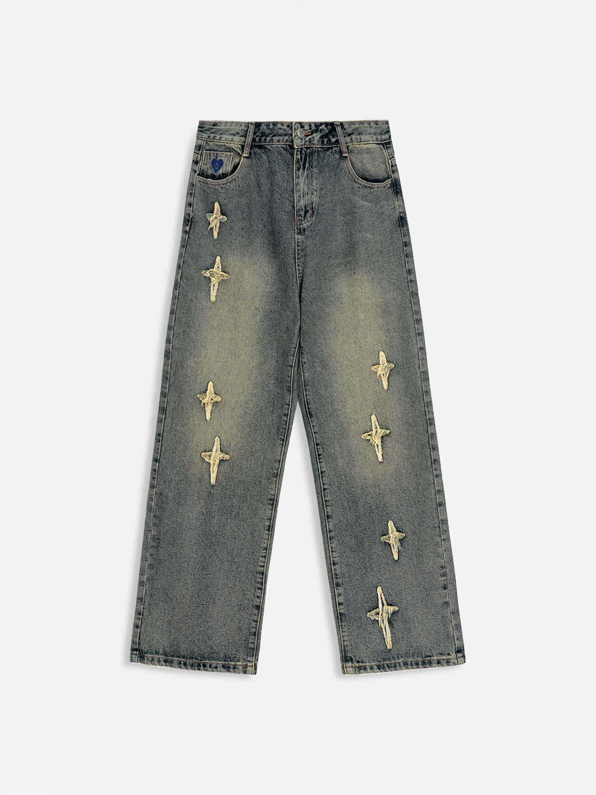 Introducing our stunning Star Embroidered Washed Jeans. Experience a flawless blend of delicate star embroidery and a regular fit, crafted to perfection. Elevate your style with the distressed wash that adds an edgy touch. Step into fashion-forward elegance today!